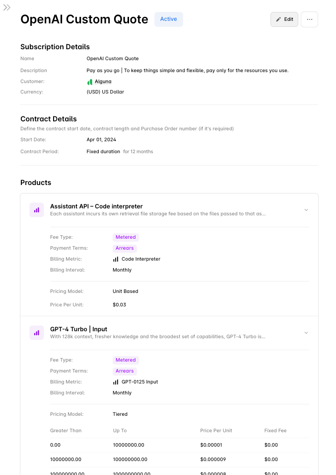 - Click the Edit button in the top-right corner of the subscription view to begin editing.